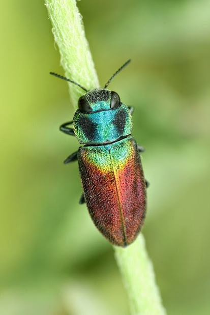 The colourful Anthaxia suzannae Théry, 1942 represents the name Jewel Beetle.